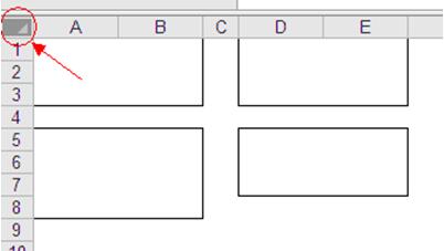 單擊行和列交叉處,可以選中整個(gè)Excel工作表,相當(dāng)于ctrl+A全選工作表,如下圖所示。全選后,再單擊“合并及居中”按鈕就可以批量全部拆分Excel工作表的所有合并單元格。